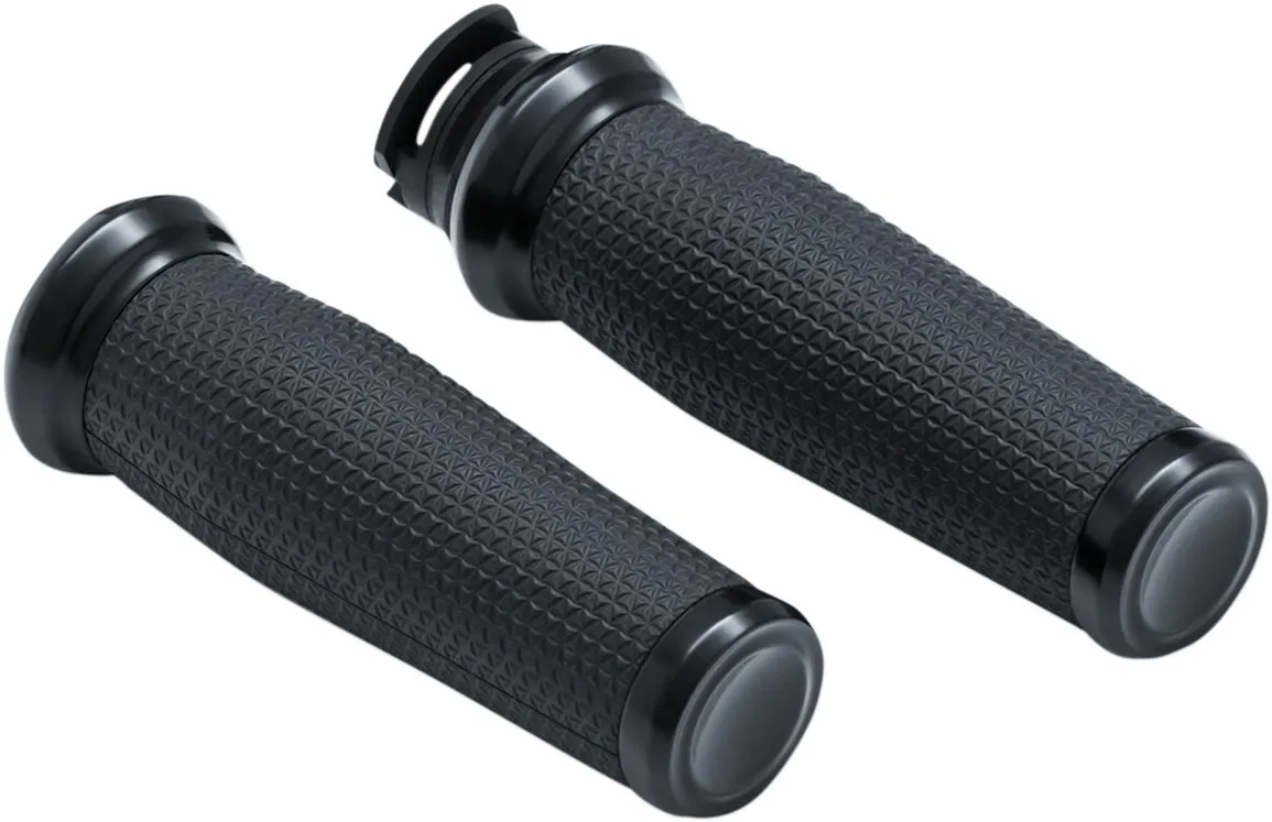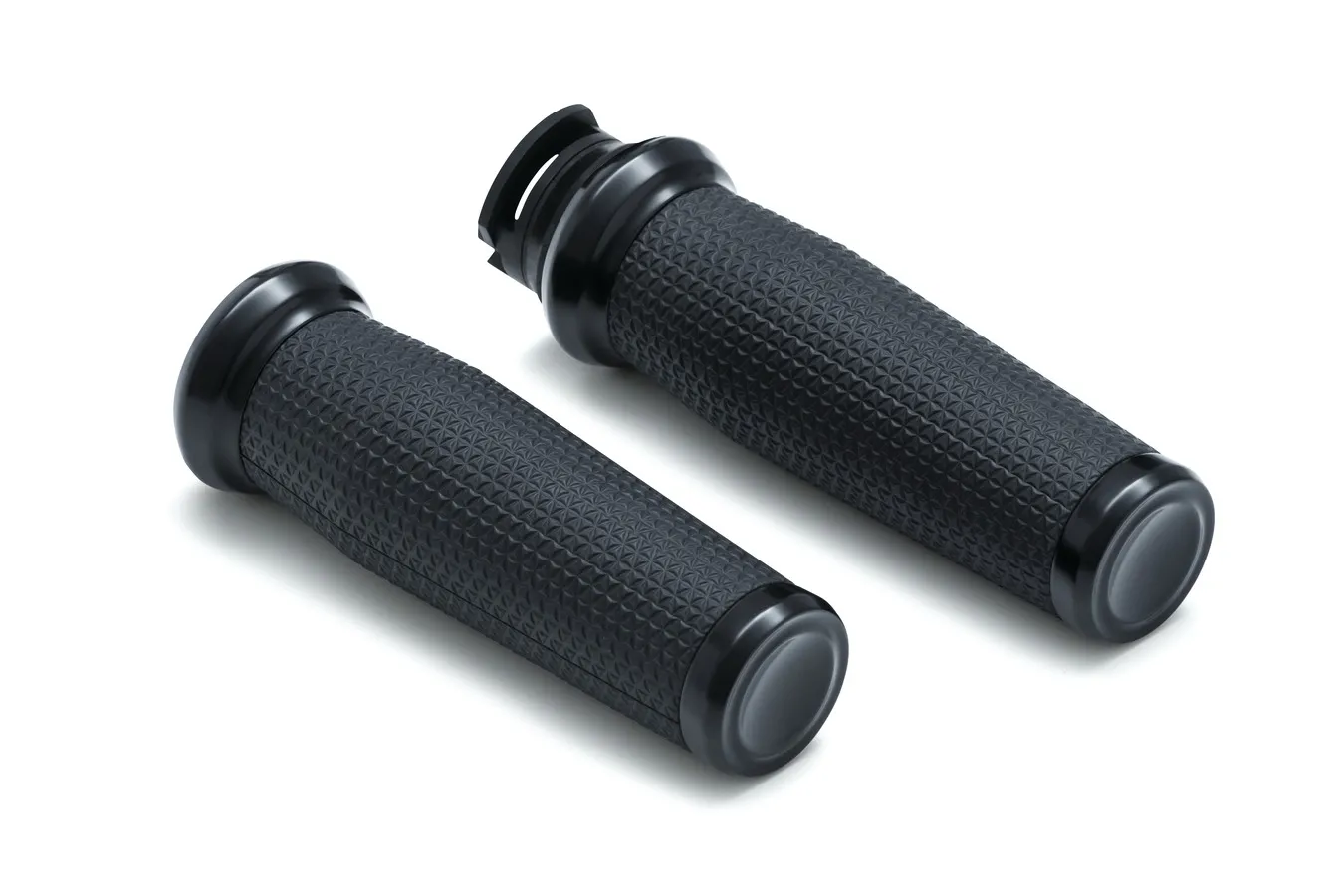 ×Thresher Grips combine a soft shark tooth-inspired knurled rubber texture with an ergonomic profile that contours to the shape of your hands for unbeatable comfort and control.